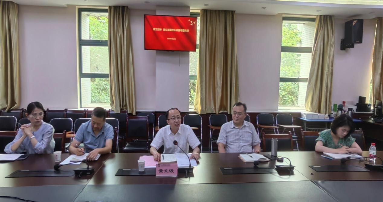 专题党课环节,黄立波从“徙木立信”的典故和启示切入,为中心组全体成员上了一堂生动的深入贯彻中央八项规定精神学习教育专题党课。党课从“建立互信营造良好育人环境”“建章立制做到凡事有据可依”“自我革命适应社会需求和国家战略”等三个方面详细论述了深入贯彻中央八项规定精神学习教育的重要意义。要求开云体育 领导班子坚持以上率下,树立正确的思想意识,引领积极向上的教风学风建设;开展自我革命,做好学科体系改革、专业交叉整合、人才培养方案调整等中心工作。最后,就深化学习教育走深走实提出三点要求:一是要提高思想认识,坚持理论学习;二是要坚持问题导向和目标导向,做好师生服务工作;三是要建立团结协作的领导班子和教师队伍,凝心聚力、服务大局,切实促进开云体育 深化改革和推动开云体育 工作高质量发展。