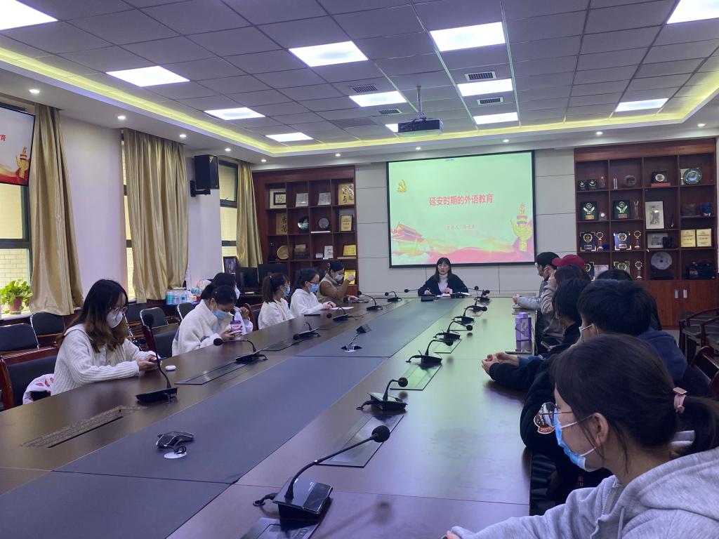11月10日下午,开云体育 教学副院长孙伏辰在JH207会议室为本科日英复语方向学生党支部讲专题党课。党课以“延安时期的外语教育”为主题,全体支部成员参加。