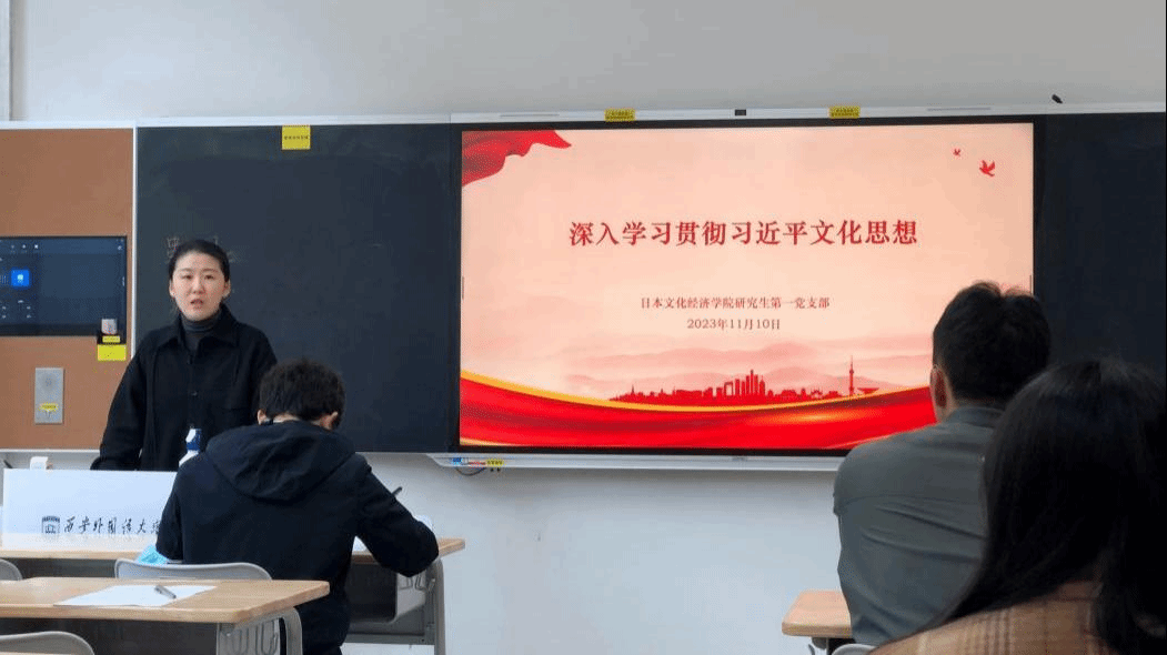 为深入学习贯彻习近平文化思想和关于宣传思想文化工作重要指示精神,2023年11月10日下午,研究生第一党支部开展“深入学习贯彻习近平文化思想”主题党日活动。活动由支部书记雷雨主持,全体党员参加。