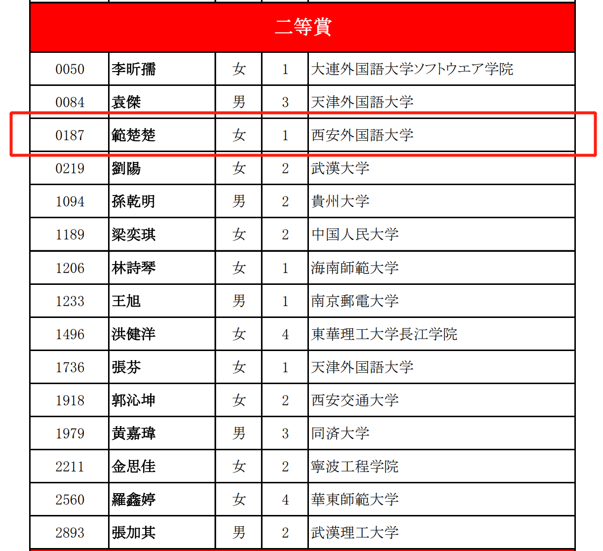 “中国人日语作文大赛”是一项推动中日交流、影响力广泛的大型日语赛事。今年比赛以“中日和平友好条约签订45周年”为主题,收到全国各地共2376篇参赛作文。经过专家评选和口试审查,最终评选出特等奖1名、一等奖5名、二等奖15名、三等奖40名、佳作奖以及优秀指导教师奖。