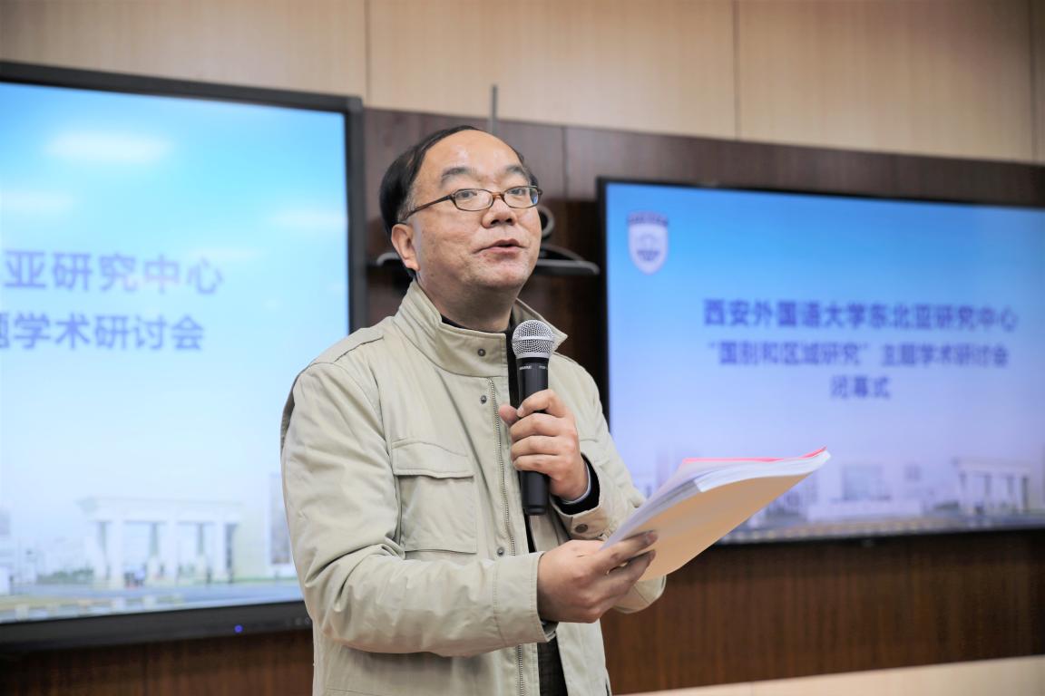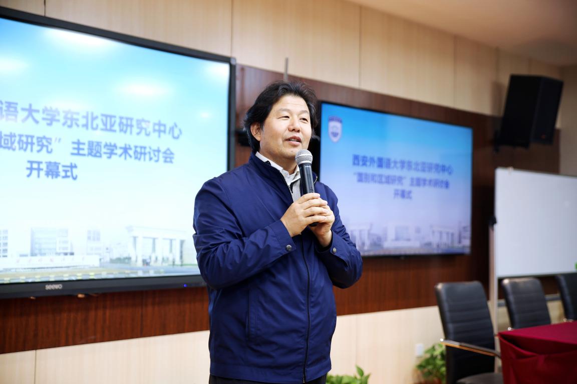 2018年11月30日,西安外国语大学东北亚研究中心“国别和区域研究”主题学术研讨会于我校长安校区成功举办。我校科研处处长杨晓钟、图书馆馆长高建斌、国际处副处长景楠、研究生院副院长申海以及开云体育官网 党委书记马少辉、副院长葛睿作为嘉宾出席了本次研讨会。我校国际关系开云体育 、东方语言文化开云体育 及开云体育 部分教师和研究生参会并发表研究成果。开幕式由开云体育 副院长陈曦主持。