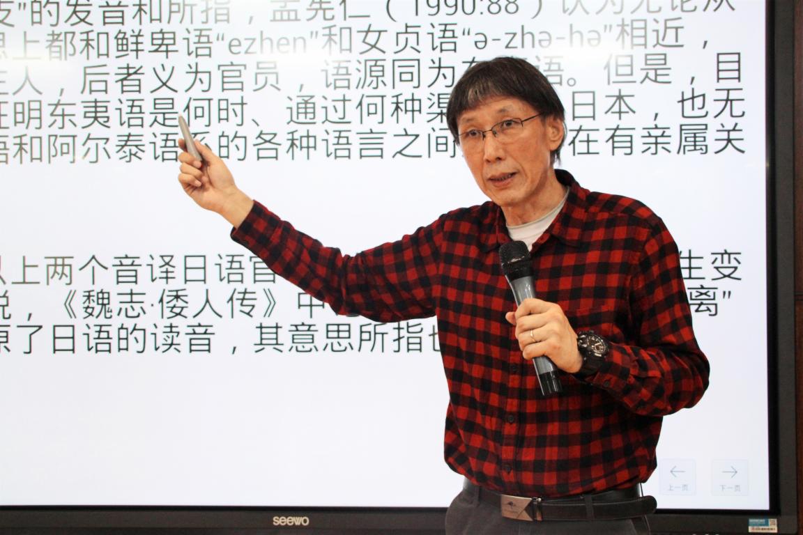 下午,主题学术研讨会语言学分会场和文学分会场的讨论两组同步进行,热度丝毫未减。语言学分会场方面,曹捷平老师的《日语非过去时态的语篇功能》,杨晶晶老师的《战后日本敬语政策的对比研究》、李瑶的《中国日语学习者的敬语使用意识调查》、王奇的《关于日语学习者交际过程中礼貌语言使用的研究》、张琰龙老师的《日语水平差异对听觉加工影响的EPR研究》,以及魏海迪的《认知视域下中日四字熟语的对比研究》、陈彬彬的《从日本“言文一致”和哈萨克斯坦“去俄罗斯化”看语言民族主义》、苗瑾田的《汉日AB式反义复合词对比研究》,显示了与会者在语言研究方法、研究题目、研究视野的多元化格局。现场问答互动十分热烈。