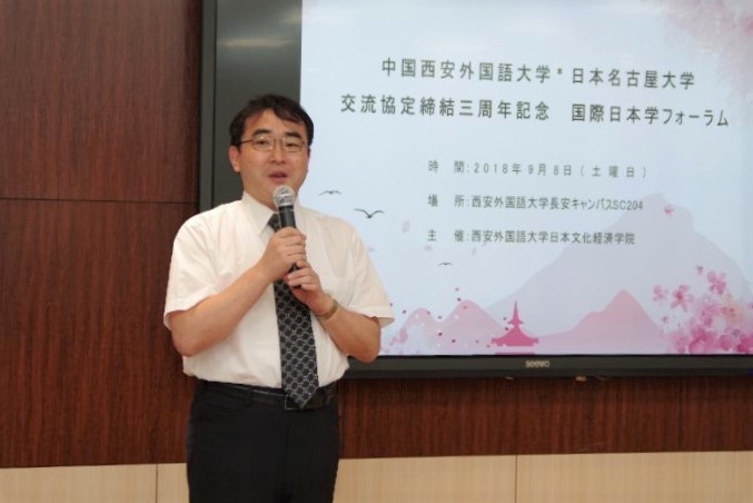2018年9月8日8时,“中国西安外国语大学・日本名古屋大学交流协定缔结三周年纪念暨国际日本学论坛”在我校长安校区开云体育官网 远程教育实验室SC204室隆重举行。