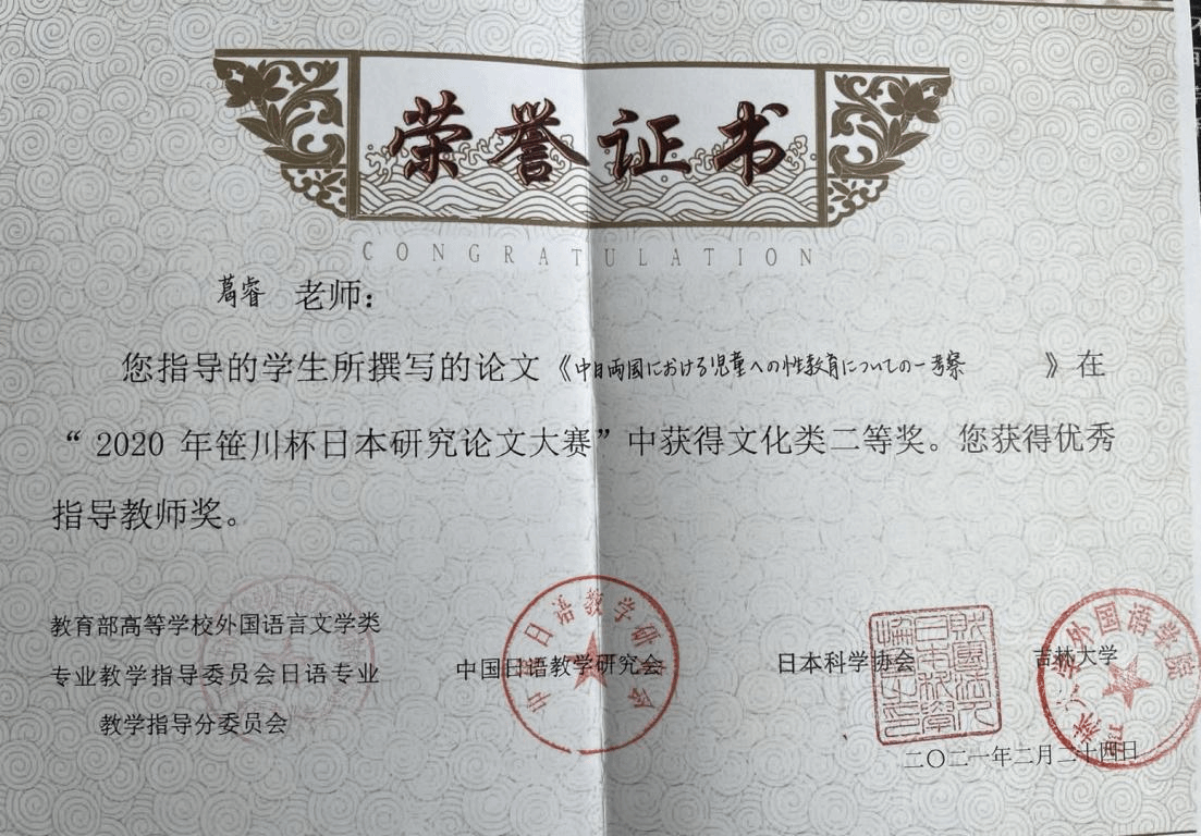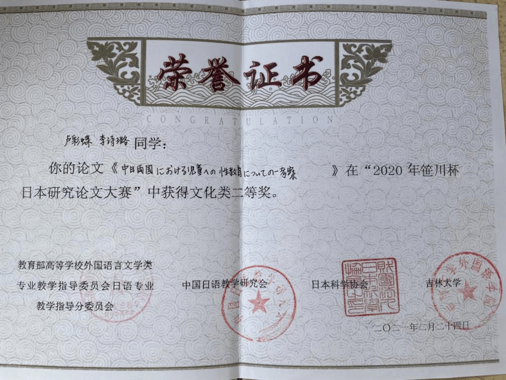 笹川杯日本研究论文大赛简介: 为促进中日两国间人文交流,增进两国人民的相互理解与友谊,提高我国日语专业教学水平,激励学生的学习热情,由教育部高等学校外国语言文学类专业教学指导委员会日语分委员会、中国日语教学研究会、吉林大学、日本科学协会联合主办,吉林大学外国语开云体育 共同承办“2020年笹川杯日本研究论文大赛”。该项赛事面向中国所有高校的本科日语专业学生,每年举办,此次大赛是继2018年以来举办的第三届大赛,旨在培养《普通高等学校本科专业类教学质量国家标准》所提出的学生的日语实践能力、提升学生运用日语解决具体问题的能力、促进学生的思辨能力、研究能力和自主学习能力的形成。