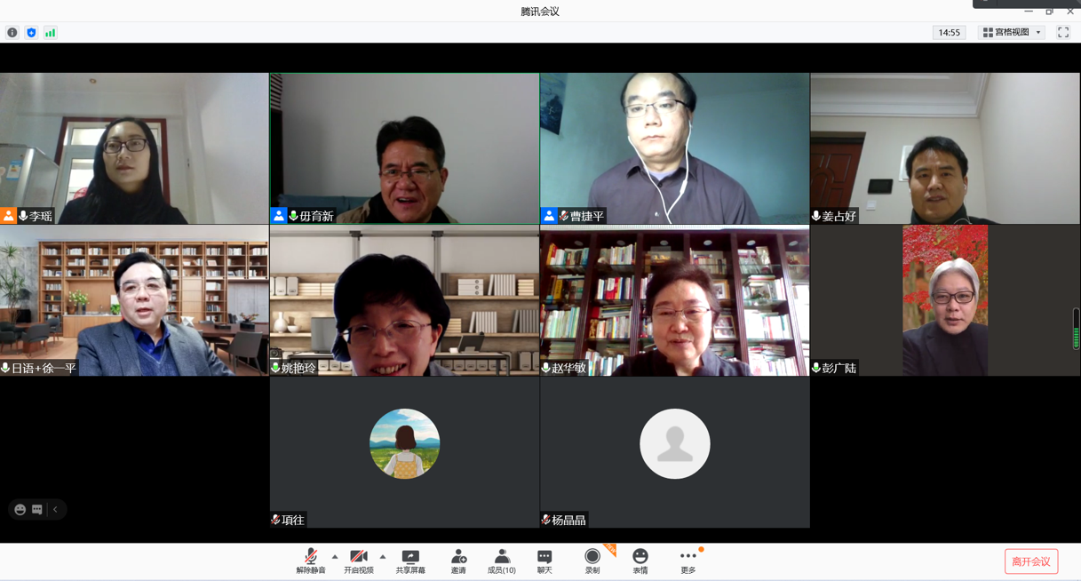 2021年1月24日上午,我校日语语言文学专业2018级博士生李瑶和2015级博士生曹捷平顺利完成博士论文线上开题答辩。此次线上答辩通过腾讯会议进行,评审小组成员有西安外国语大学姜占好教授、北京理工大学彭广陆教授、北京外国语大学(北京日本学研究中心)徐一平教授、大连外国语大学姚艳玲教授、北京大学赵华敏教授(按姓氏拼音排序)。开题答辩由姜占好教授主持,日语语言文学专业博士生导师毋育新教授及部分博士生参加此次开题答辩。