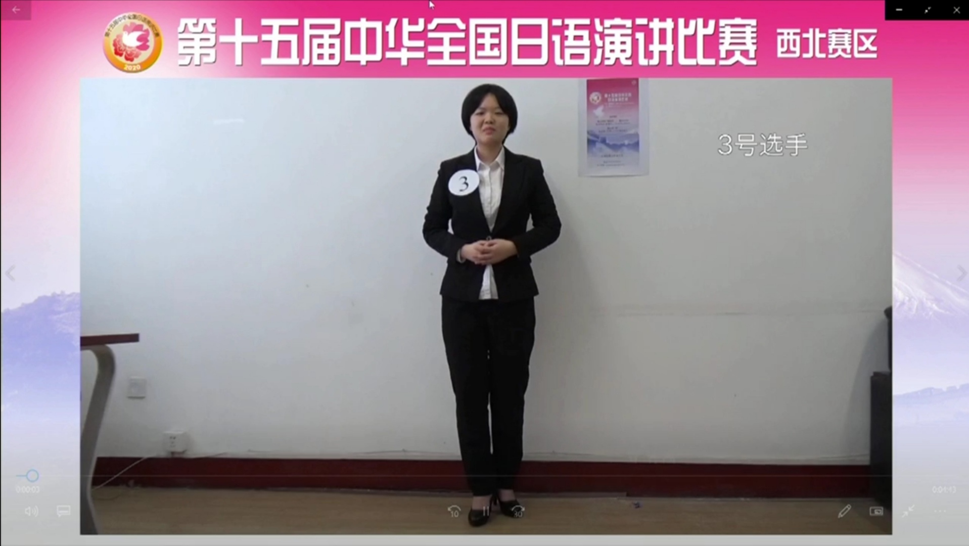 命题演讲主题为“私の中の「新時代」---2030に向けて(我心中的“新时代”----面向2030)”和“私が感じた絆----コロナ禍の中で(同心抗“疫”)”。可任选一题。命题演讲的顺序由选手抽签决定;选手们围绕主题,结合自身学习生活与文化认知,发表演讲。