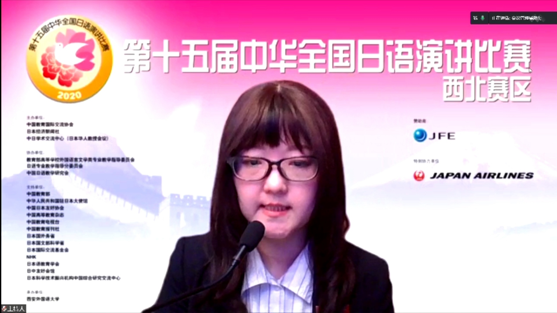 最后,开云体育 院长毋育新教授进行闭幕致辞。他表示,中华全国日语演讲比赛是西北地区高校与日本间交流的桥梁,为西北地区青年学生创造了可贵的国际交流机会。本次日语演讲大赛借助线上联线的方式,才得以继续进行。这一方面得益于技术的进步,同时也是各方共同努力的成果。希望明年参赛选手可以来到西安外国语大学,进行现场的同台竞技,一展中国日语学习者的风采。