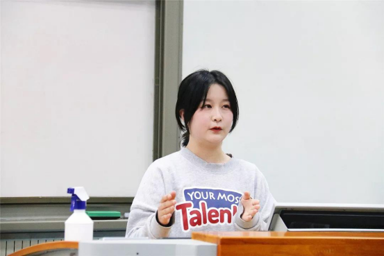 接下来薛海怡学姐介绍了自己在三个月赴日社会实践时亲身经历与归来后的心得体会。字里行间体现了自己在这次社会实践中的巨大收获。她强调,本次赴日实践也使自己对以后职业道路的思考更加清晰。同时,她透露了想再次赴日实践的想法。