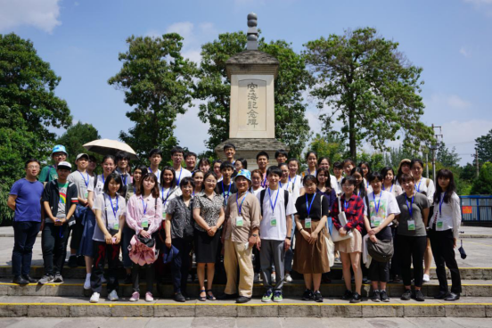 参与交流的中日青年首先来到了兴庆宫公园的阿倍仲麻呂纪念碑进行参观。在阿倍仲麻呂纪念碑前,导游对阿倍仲麻呂的生平和诗作进行了细致的讲解,中日青年专心倾听,收获颇丰。日本青年还在兴庆宫公园内体验了颇具中国特色的舞龙。之后,大家参观了青龙寺,日本青年对与日式建筑相似的青龙寺倍感亲切。接着,一行人参观了空海纪念堂,在导游的讲解中了解到空海对于中日文化交流做出的巨大贡献。在纪念堂前,日本青年看到树上挂着祈愿的红丝带,也纷纷用中文写下自己的心愿,挂在了树上。在品尝了陕西特色美食后,中日青年还共同参观了碑林博物馆和西安明城墙。陕西悠久的历史、灿烂的文化给全体成员留下了深刻而难忘的记忆。