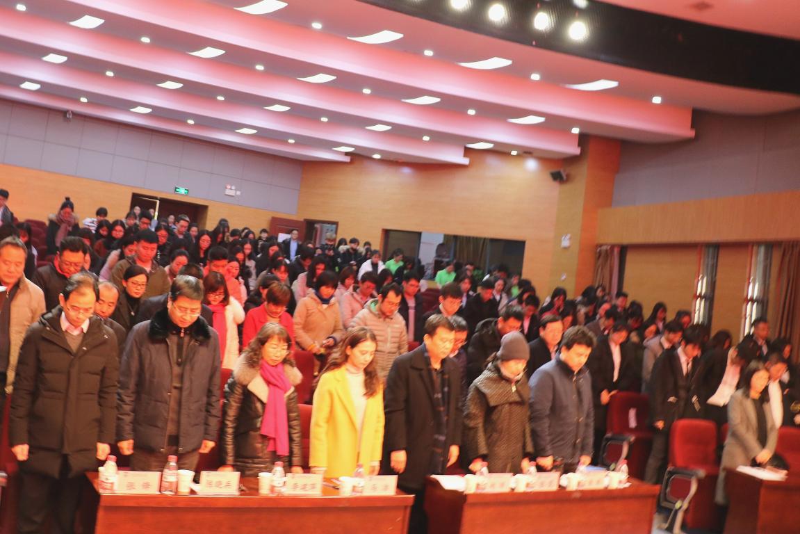 适逢第五个南京大屠杀死难者国家公祭日,会议开始前,与会师生集体为在南京大屠杀中死难的同胞和为祖国牺牲的革命英烈默哀。