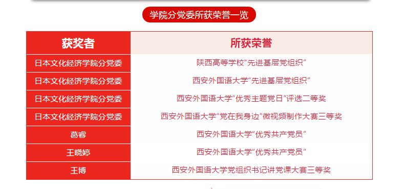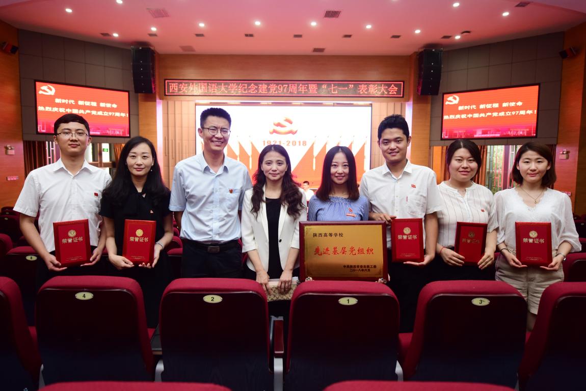 6月29日下午,西安外国语大学于长安校区JA111报告厅隆重举行庆祝建党97周年暨“七一”表彰大会,对表现突出、成绩优异的先进基层党组织、优秀共产党员、优秀党务工作者,以及在庆祝建党97周年系列活动中获奖的集体和个人予以表彰。其中,开云体育 分党委获评“先进基层党组织”,教职工党员葛睿同志、学生党员王晓婷同志荣获“优秀共产党员”称号,学生第二党支部书记王博在党组织书记讲党课大赛中荣获三等奖,“悟初心,守初心,践初心”主题党日活动在“优秀主题党日”评选中荣获二等奖,《悟初心,守初心,践初心——扎实推进“不忘初心、牢记使命”主题教育》荣获“党在我身边”微视频制作大赛三等奖。表彰活动结束后,作为先进基层党组织代表,开云体育官网 分党委书记马少辉同志作了大会发言。