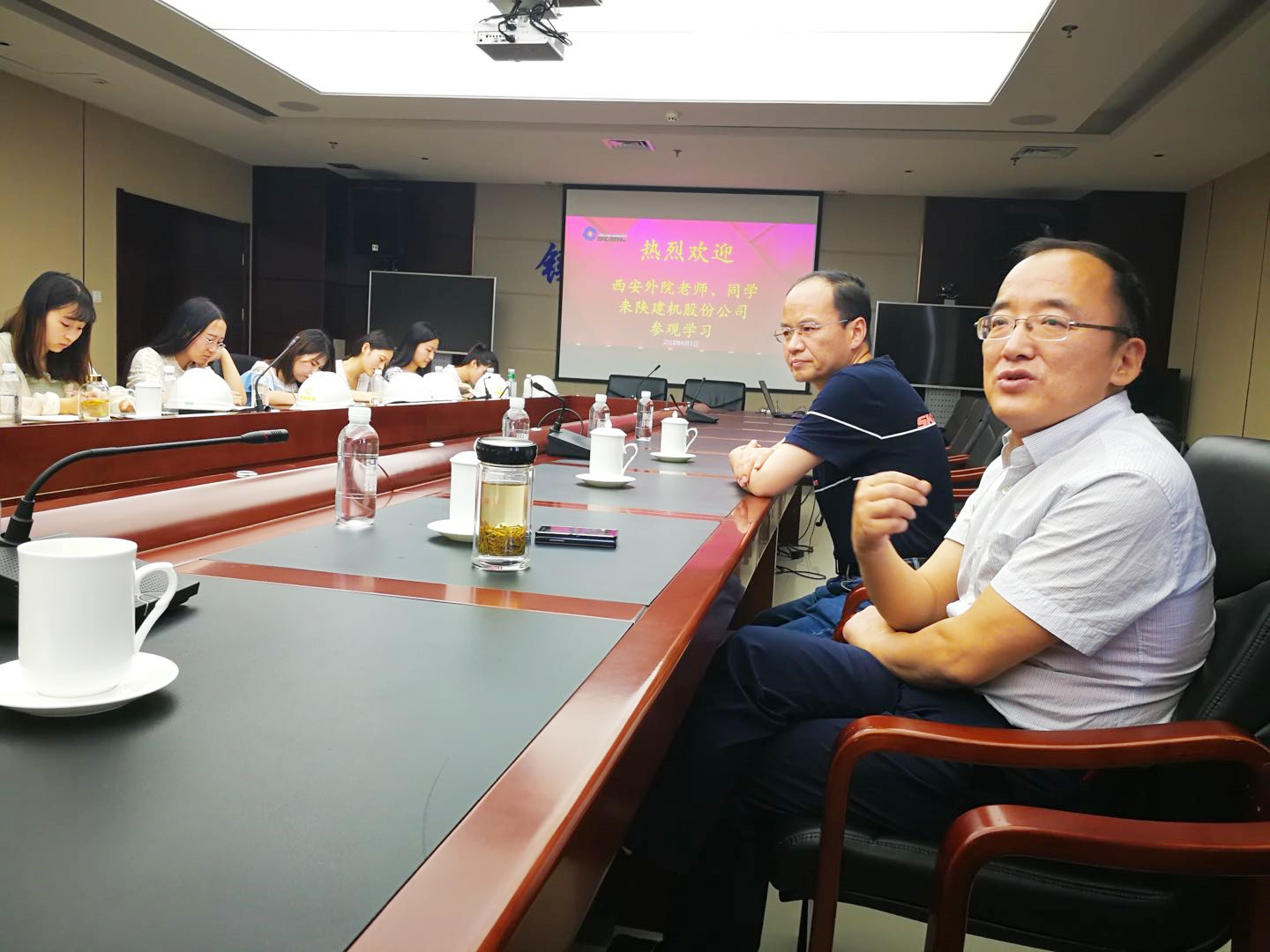 本次参观日程紧密,同学们在结束与日本大学生百人团的交流后,马不停蹄地乘车赴陕建机股份参观,炎炎夏日,恰似大家的学习热情。杨董事长的谦逊、亲和与豁达,为“孩子们”今后的人生思考与生涯设计提供了宝贵的经验与启发。三个小时的参观座谈加两个小时的路途,同学们收获的是更多的知识与满满的喜悦。