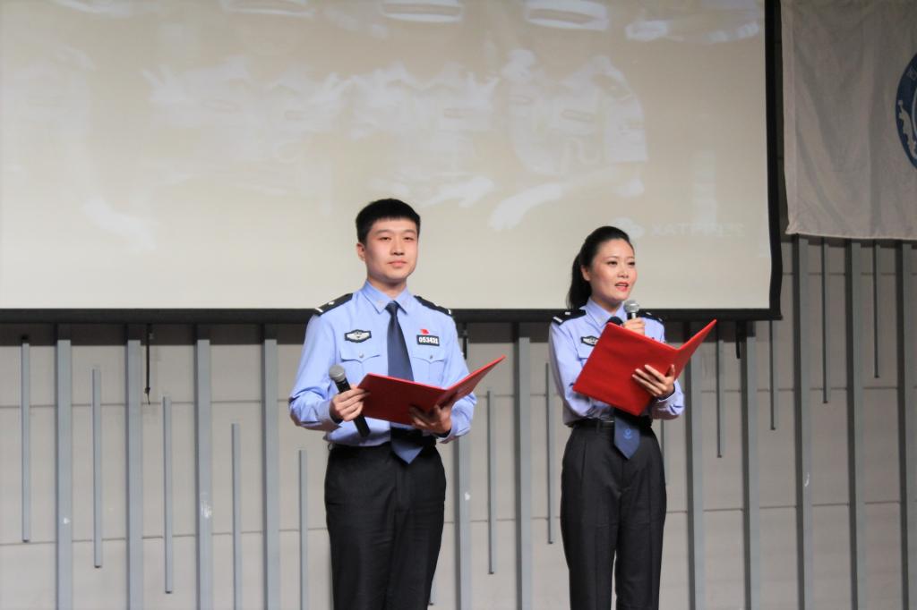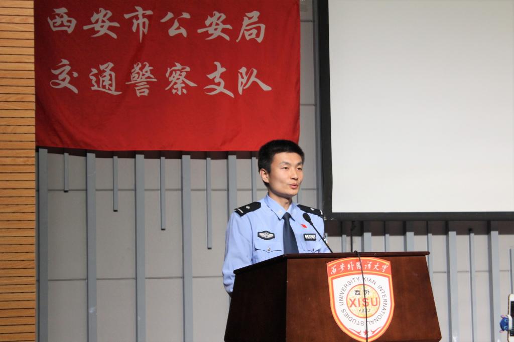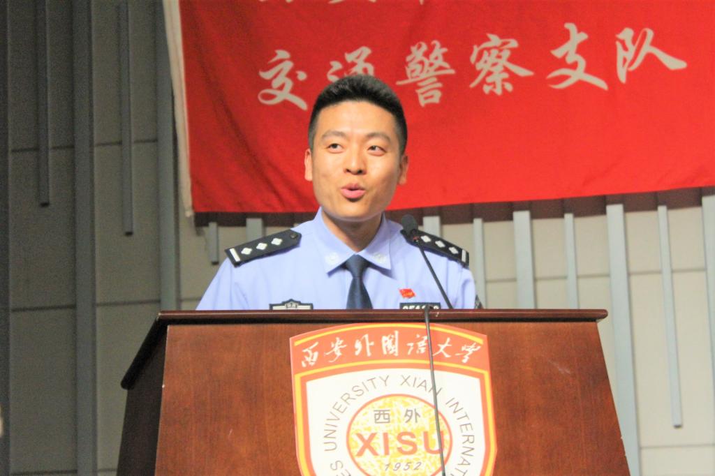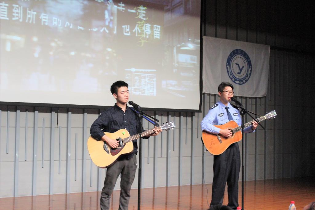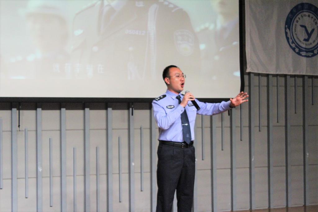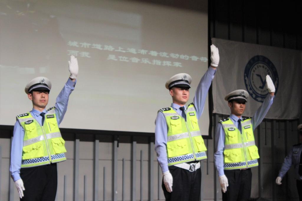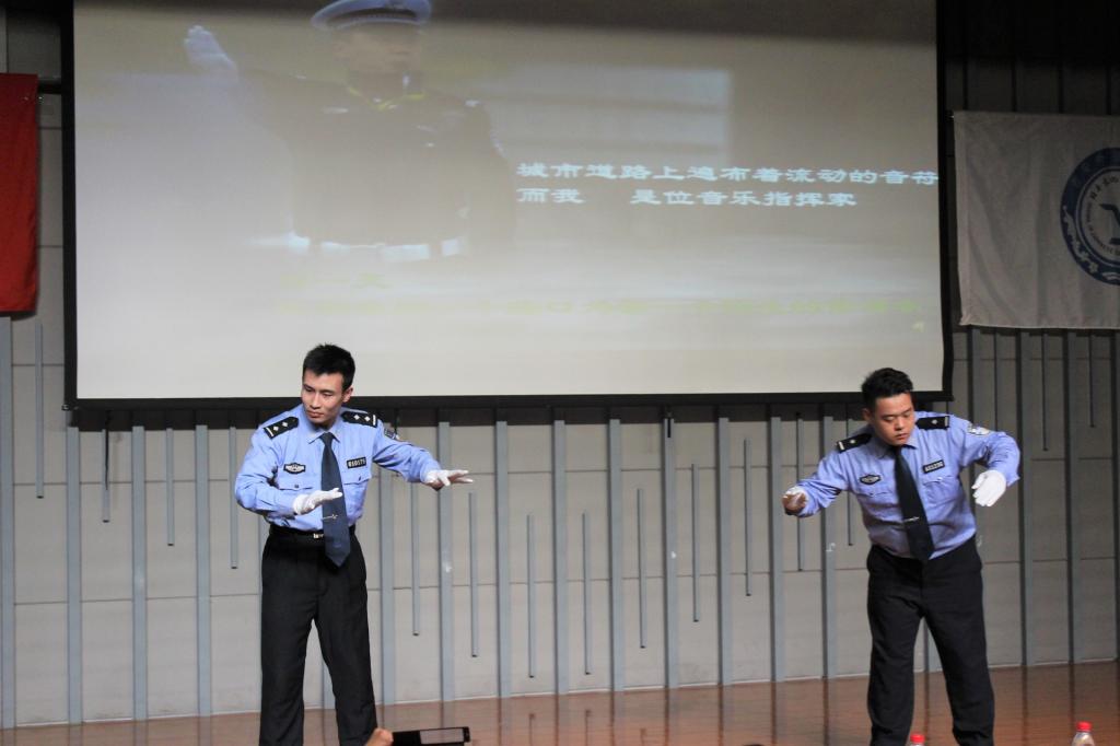 活动正式开始之前,一段2016年春运期间拍摄的西安交警快闪视频呈现出阳光健康的青春烙印,瞬间点燃了全场气氛。学校保卫处处长朱昭鹏上台致辞,表达了对西安交警支队多年来支持配合我校平安校园建设的由衷感谢。随后,由交警新城大队的美女交警为大家献上一场婀娜的古典舞《繁花》,展现出交警严谨工作背后的文艺才华;交警支队政治部同志激昂的诗歌朗诵《警星闪耀》,将交警们心系百姓,为公爱国的形象刻画得惟妙惟肖,深情朗诵之下是他们睿智果敢的品质,是他们敬业忠诚的荣光;从中兴公司技术骨干转行交警、携笔从戎的张琦警官在《在互联网+创新路上,苦并快乐着》演讲中,与大家分享了他“与其抱怨,不如改变”的人生追求,为了实现人生价值,他勇敢尝试,从基层做起,与群众融合,开发科技产品,以求便民利民的成长故事;开云体育 一年级关舒月同学为警察叔叔献上的一曲《思慕》,博得场下掌声连连;交警碑林大队一群年轻帅气的交警带来的《交警指挥手势机械舞》中,基于其精湛娴熟的专业水准和对本职工作由衷热爱的新颖表演更是将全场气氛推向高潮;由交警高新大队张鹏飞警官与开云体育 孙岩同学一同带来的西安交警版《成都》,在怀旧旋律与交警工作画面的交织叠加下演绎出了一段别样精彩;在应接不暇的节目间隙中,开云体育 杨磊同学现场教起了交警学说日语;来自曲江大队的李一波警官是一名从外企转行交警的多面手,在《2+5=0交通理念宣传》演讲中,他别出心裁地穿插日语、英语,以轻松幽默的语言风格与形象生动的解说方式阐述西安交警大队实干与创新并行的重要举措,运用视频,图文并茂,直击人心,结合最新共享单车等热点事件,将原本僵硬的理论知识与鲜活的生活情景巧妙结合;活动最后,交警高新大队李冰警官以一曲慷慨激昂的《有我在》,唱出了交通警察作为城市钢铁盾牌的高大形象,他们微不足道,他们责任如山,他们是城市发展的螺丝钉,他们更是撼动世界的顶梁柱……