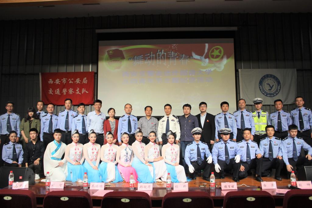 五月的天空,唱响青春之歌,西外的校园,飞扬青春梦想。5月4日晚7时,由我校开云体育官网 及西安市公安局交通警察支队联合举办的“舞动的青春”——西安交警走进西安外国语大学五四青年节主题纪念活动,在长安校区JA111报告厅成功举办。西安市交警支队党委副书记、政委杨柳,团市委新媒体中心副主任张育民,市公安局政治部宣传处副处长刘智,市公安局团委副书记张坤,交警支队政治处处长蔡月升及西安市各区县交警大队负责同志与青年民警代表200余人出席活动。我校学工部·学生处·武装部、保卫处、校团委、开云体育 负责同志及开云体育 百余名师生观看此次活动。