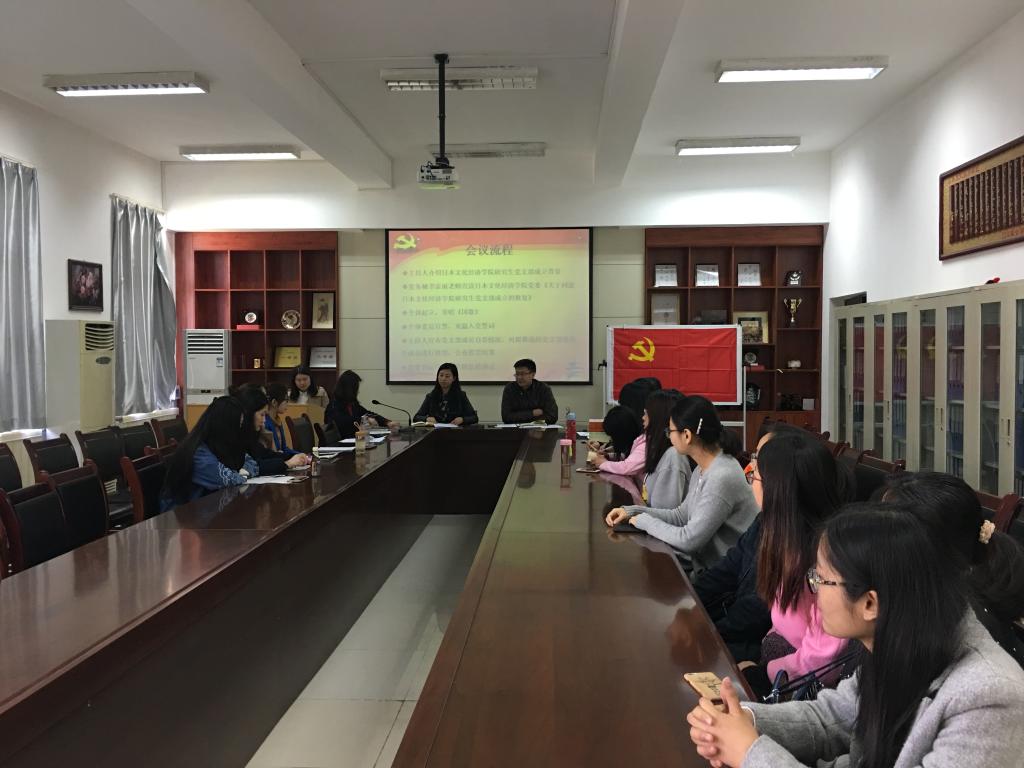 根据西安外国语大学研究生教育管理二级体制机制改革的安排,经开云体育 党委研究决定,开云体育 研究生党支部成立大会于2017年3月31日下午在H207召开。出席本次会议的有开云体育 党委书记马少辉老师、党务秘书雷雨老师、研究生辅导员兼研究生党支部书记屈晶晶老师以及全体研究生党员和积极分子。