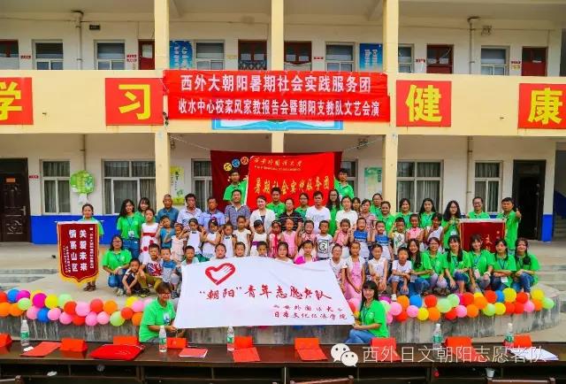 2016年,“朝阳”在“勤学修德共圆中国梦,明辨笃行同筑西外心”的主题下再次启程,在炎炎夏日里为收水中心校的孩子和收水的父老乡亲们送上一份来自西安外国语大学青年志愿者们的独特清凉。