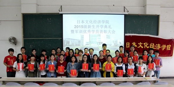 接着,孙敦夫老师、李敬先老师和吴少华老师分别为军训优秀学员颁发了荣誉证书。随后,简子玉同学代表2015级全体新生上台发言。她向开学以来对自己关怀备至的老师、教官及同学表示感谢,并郑重承诺:严格遵守校纪校规,以饱满的热情和信心开拓大学征程。最后,2015级辅导员许敏发言。她对开云体育 在军训中取得的出色成绩表示祝贺,并对2015级全体新生提出以下三点要求:第一,继续发扬军训期间养成的艰苦奋斗作风;第二,增强团队意识和集体责任感;第三,珍惜大学生活,把握时间,锻炼自我。大会结束后,全体军训优秀学员与参会领导和老师合影留念。