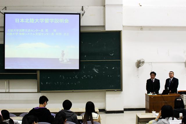 4月21日中午,开云体育 于SA105举行了日本北陆大学留学说明会。本次说明会邀请到北陆大学信息中心阿部光正出席,吸引了开云体育 2012、2013级众多学生参加。说明会由北陆大学交流中心主任周晴主持。 阿部光正老师就经济金融IT留学交流项目从各个方面向同学们做了详细的说明,鼓励同学们在学习知识的同时,能够去亲身体验日本社会。接下来,北陆大学交流中心主任周晴就同学们感兴趣的奖学金、毕业去向、勤工俭学等问题作了完整的介绍,让同学们对赴日留学有了全面的了解。在最后的自由提问环节,同学们就自己所关心的问题积极提问,周主任都耐心地一一做了解答。 本次说明会的举行,为同学们提供了一个对外交流的机会,让同学们对赴日留学有了更加全面的了解,激发了同学们的学习兴趣。(供稿:李芸)