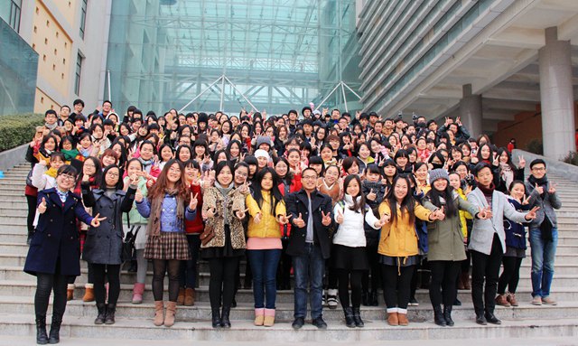 会后,杜老师和全年级同学在校图书馆前合影留念。(供稿人:鲁思媛)