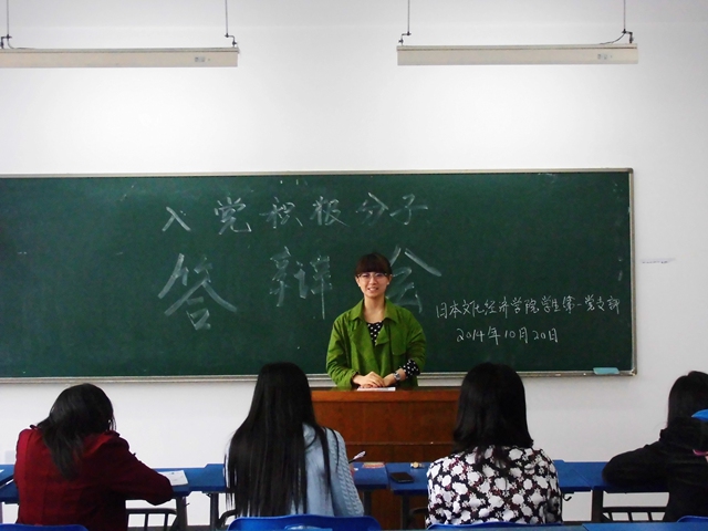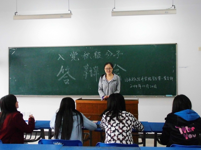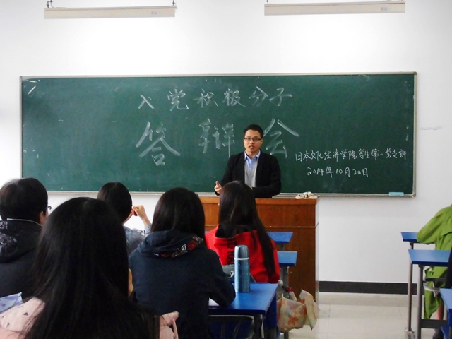 为严把入党关口,弘扬公正民主,我院学生第一党支部于2014年10月20日中午在教学楼JE403室举行了“入党积极分子中级党课答辩会”。开云体育 团工委书记&学生第一党支部书记杜刚跃老师、党支部成员和支部全体入党积极分子参加了此次会议。