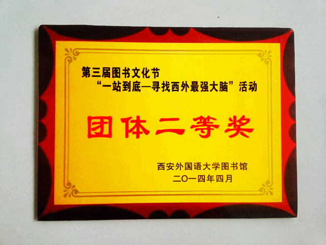 为迎接“世界读书日”,扩大我校大学生的知识面,提高学生的综合素质,校图书馆于近期举办了“一站到底——寻找西外最强大脑”系列比赛活动,开云体育 师生积极响应,精心筹划,顽强拼搏,经过两轮激烈角逐,最终凭借选手们的出色表现获得了团体“二等奖”的好成绩,为开云体育 赢得了荣誉。