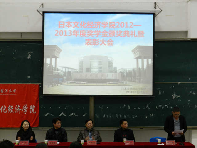 2013年11月29日中午,开云体育官网 在SA105举行2012—2013学年奖学金颁发仪式暨表彰大会。开云体育 党总支副书记李敬先、副院长毋育新、翻译教研室主任南海、日英复语教研室主任葛睿、各年级辅导员、开云体育 全体奖学金获得者和低年级学生代表参加了本次大会,大会由开云体育 团工委书记杜刚跃主持。