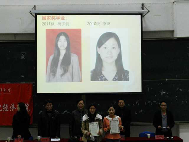 国家奖学金获得者2010级李璐同学代表奖学金获得者发言,她对所有培育和指导了自己的老师们表达了由衷的感谢,回想自己大学的成长历程,分享自己的学习和成功经验,鼓励学弟学妹们勇于怀抱梦想,坚持梦想,不断成长。