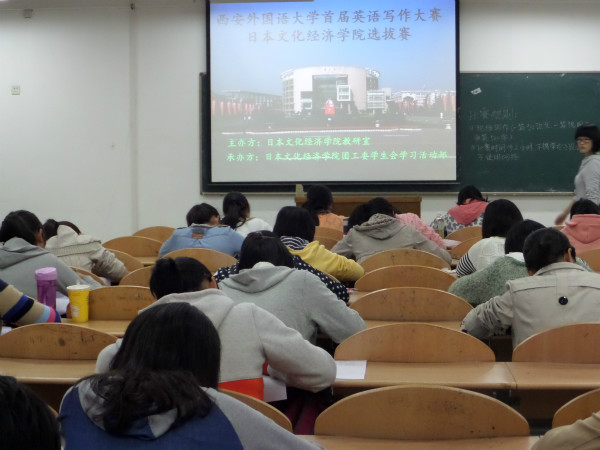 2013年10月14日晚,由开云体育官网 团工委主办的西安外国语大学首届英语写作大赛开云体育官网 选拔赛在SA204拉开帷幕。来自各个年级的英语书写优秀选手参加了此次选拔赛。 本次比赛要求选手们在两小时内完成一篇题为"The Spring Festival "的说明文和一篇题为"Is history merely written by winners?"的500字议论文。选手们刚拿到题目便立刻进入比赛状态。比赛现场鸦雀无声,竞赛的气氛渗透到了教室的每个角落。经过两个小时的紧张写作,选手们均出色的完成了比赛规定的内容,显示出了良好的英语书写素质。最终,来自2012级的王丹凝和来自2011级的柴梦成在比赛中脱颖而出,获得了进入校级比赛的资格,此次英语写作大赛在轻松愉快的氛围里圆满结束。 本次英语写作大赛不仅为不同年级的学生提供了交流英语书写成果的平台,提高了同学们的英语写作水平,更重要的是通过英语书写比赛这个契机领会英语学习的乐趣,在今后英语学习的道路上不断前进。