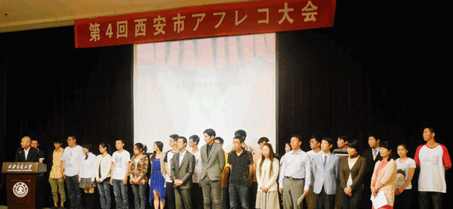 第四届西安市日语配音大赛于2013年5月11日在西安交通大学逸夫科技国际会议中心盛大举行。我校及西安交通大学、西北大学、陕西师范大学等来自全省10所高校19支队伍参加了本次大赛。我校开云体育官网 参赛队由2011级4班、9班组成。分别由六位选手组成的11级4班表演的《邻居的山田一家》幽默、滑稽,荣获亚军。由八位选手组成的11级9班表演的《樱桃小丸子》凭借扎实的日语功底和逼真的演绎博得了评委及现场观众的阵阵掌声,拔得头筹。这是继去年以来,我校第二次囊括冠亚军。 西安市日语配音大赛,是由西安日语教师会主办、西安交通大学承办、卡西欧赞助的省级大学生日语配音大赛,至今先后已有30多所高校、70多支参赛队伍参加比赛,是我省唯一的一个大学生日语配音赛事。我校代表队第一届荣获亚军、第二届荣获冠军、第三、四届连续夺得冠亚军,充分展示了我校日语基础教学成绩,为我校争得了荣誉。