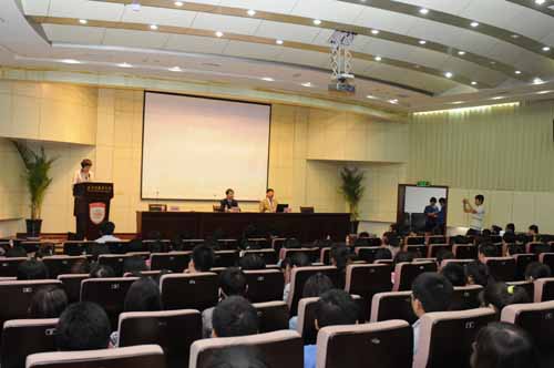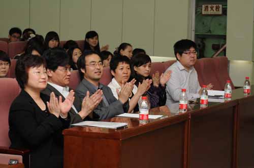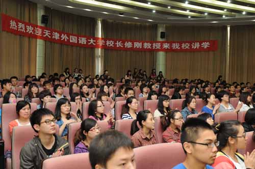 受聘仪式后,修刚教授为在场师生作了题为“跨文化交际与日语教学”的专题讲座。讲座中,修刚教授阐述了在经济一体化的大背景下,跨文化交际的重要性及迫切性。并以生动诙谐的实例探讨了日语教学中培养跨文化交际能力和日语研究是紧密联系,互相促进的。 修刚教授指出,文化不存在“善恶”之分,在学习语言自身的同时,也应加强相互之间文化层面的学习,以减少跨文化交际当中的摩擦。之后,对中国日语教学做了展望。修刚教授的精彩演讲获得了阵阵掌声,使在场师生受益匪浅。在随后的自由提问时间,修刚教授回答了两位学生的提问,再一次强调培养学生自主学习能力和跨文化交际能力的重要性。最后,开云体育官网 院长赵萍博士代表全院师生再次对修刚教授的演讲,以及聘请到修刚教授作为客座教授表达了真挚的谢意!
