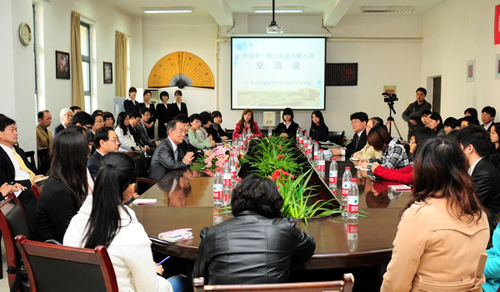 2011年10月28日下午,日本国驻华大使丹羽宇一郎先生一行来我校访问,户思社校长与来宾进行了亲写友好的会谈。