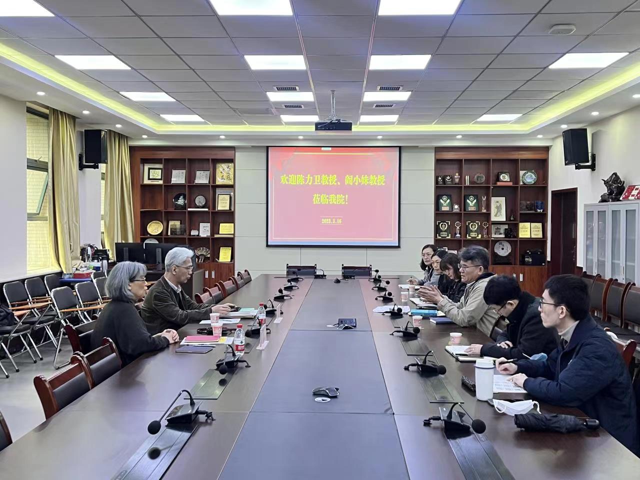 2023年3月16日,日本成城大学教授、著名中日语言交流史、日语史学者陈力卫,日本信州大学教授、著名翻译家、我校校友阎小妹访问开云体育 并与部分教师座谈。