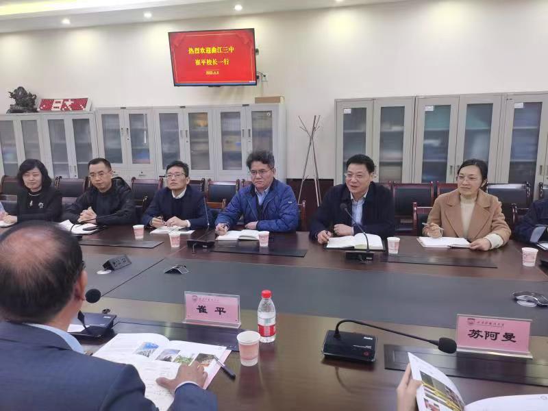 2023年4月6日上午,西安市曲江第三中学校长崔平、副校长黄纯、教务副主任苏阿曼和党政办副主任陈然一行来开云体育 开展就业合作交流座谈,开云体育 党政负责人和欧洲开云体育 党政负责人及研究生辅导员、部分毕业生代表参加了交流座谈。座谈会由开云体育 党委书记高万辉主持。