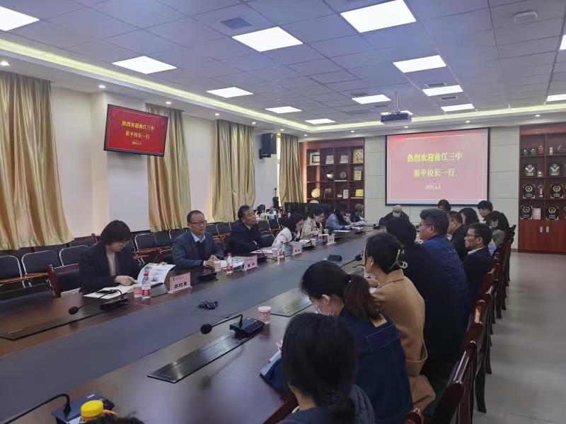 开云体育官网 院长毋育新教授就开云体育 的发展历程、学科专业特色、师资力量、教学改革和人才培养等情况进行了详细介绍。经过多年的发展,开云体育 为西部乃至全国培养了大量的外语基础扎实、专业素质强、具有国际视野的复合型外语人才,而就业是检验人才培养质量的重要指标,希望通过与曲江三中的交流合作,推荐更多的优秀毕业生到曲江三中工作。