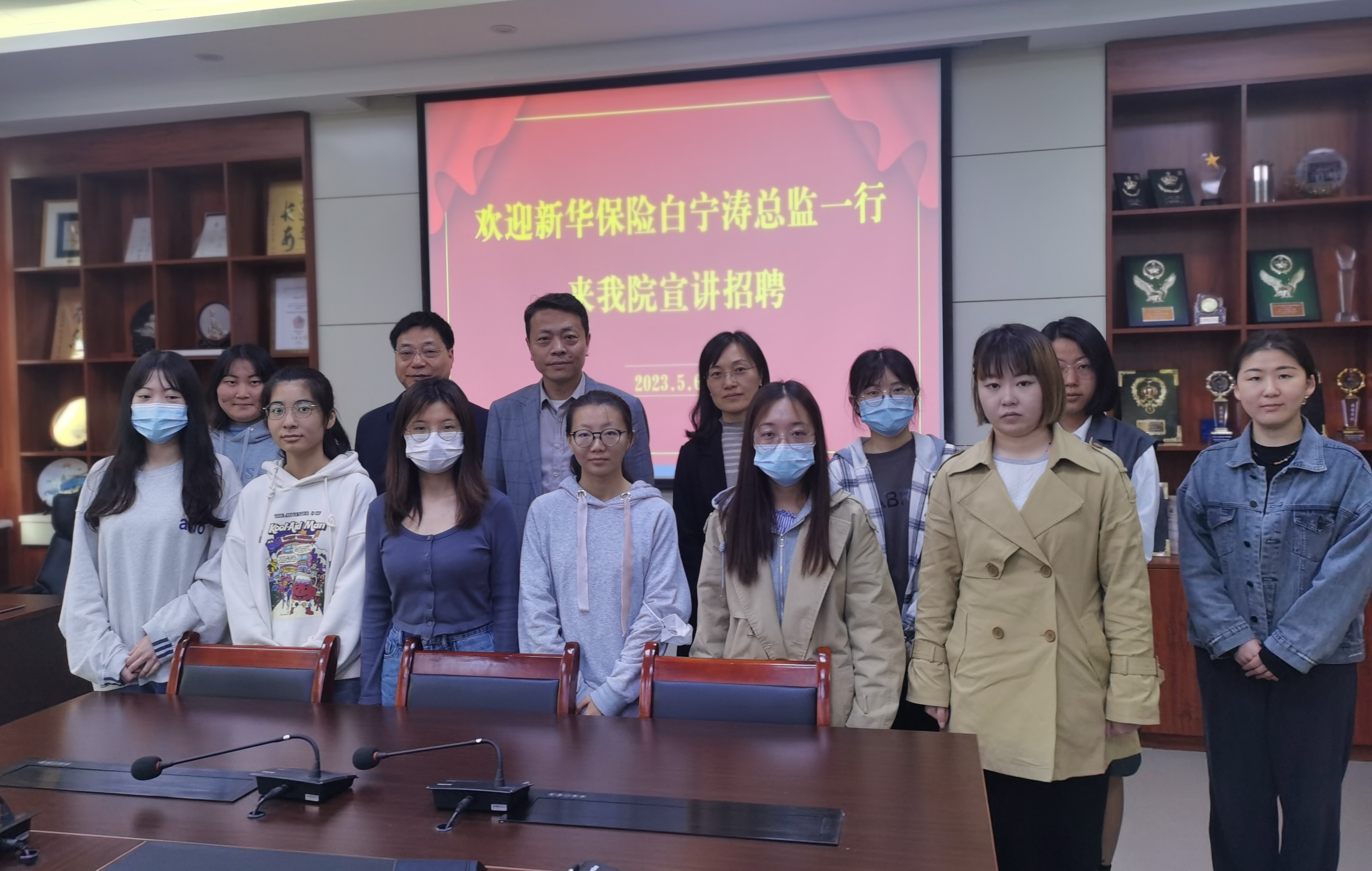 2023年5月6日上午,新华人寿保险股份有限公司功勋总监白宁涛应邀来开云体育 开展专场宣讲招聘。开云体育 院长毋育新、党委书记高万辉、副书记龚玉伟、毕业班辅导员雷雨和部分毕业生参加宣讲招聘。