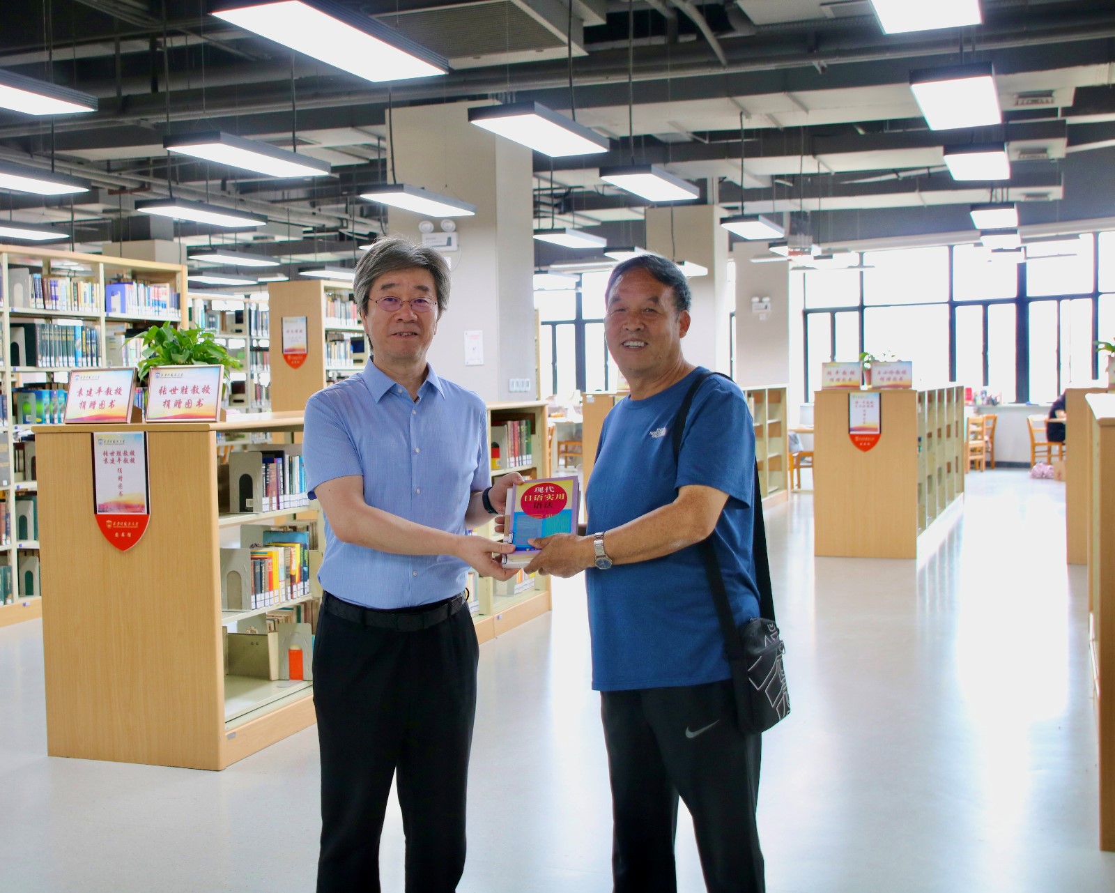 在热烈的氛围中,杨晓钟代表图书馆接受捐赠,党争胜为捐赠人颁发捐赠证书,李仲秋为捐赠人回馈纪念品。