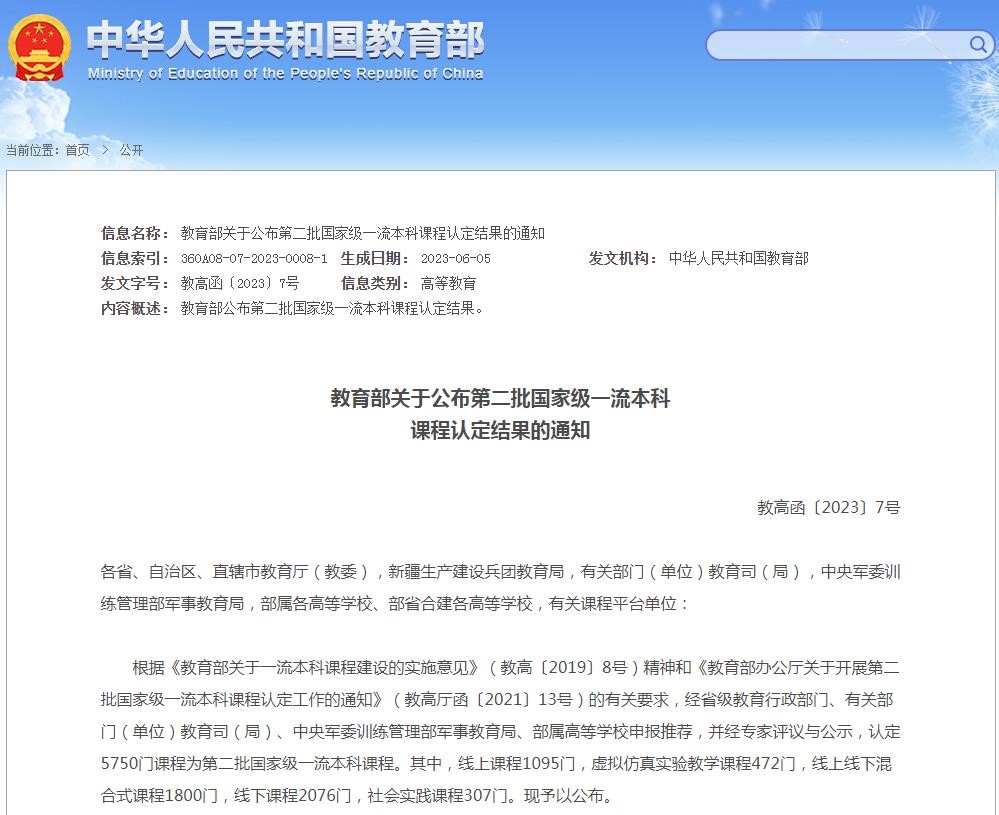 第二批国家级一流本科课程以高阶性、创新性、挑战度为标准,推动教学理念、课程结构、课程内容和教学方式方法改革,在提高课程质量、推动课堂革命等方面取得了重要成效。下一步,学校将按中省有关部署,认真做好党的二十大精神及时、全面、准确进课程和进课堂工作,将党中央的决策部署落实到本科课程建设中,紧密结合基础学科拔尖创新人才培养和“四新”建设,推动教育数字化深度融入人才培养、教育教学、教育管理,深化本科课程体系、课程内容与教学模式改革与创新,注重一流本科课程建设与应用优秀案例的推广,推进一流本科课程示范引领作用取得更大成效。积极推动更多优质在线开放课程和虚拟仿真实验课程上线开放共享,与有关课程平台单位共同做好在线课程教学服务,切实推进课程内容与时俱进、更新完善,提升课程资源和共享服务质量,为国家高等教育智慧教育平台提供支持。