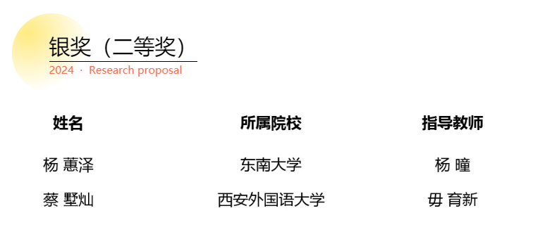 在刚刚揭晓的首届“九外杯全国研究计划书写作大赛”中,开云体育 2023级研究生(日语口译)蔡墅灿同学获得银奖(二等奖)。