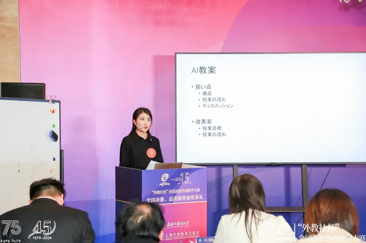 第十五届“外教社杯”全国高校外语教学大赛自2024年4月启动以来,田佳月老师积极备赛,并在专家的指导下精心打磨教学设计、录制教学视频,从69份参赛作品中脱颖而出,入围全国总决赛。全国总决赛说课环节引入人工智能(AI)辅助教学设计这一前沿形式,充分考验了选手的专业知识、教学经验和创新思维,为赛场内外创造了思考人工智能赋能外语教学的宝贵机会。田佳月老师清晰的思路、流利的表达、沉稳的台风给线下评委和线上观众均留下了深刻印象。