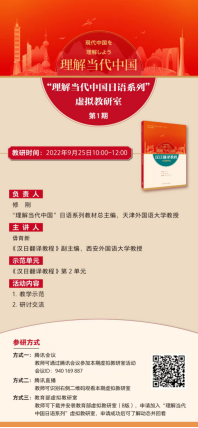 2022年9月25日上午10点,由外研社主办的“理解当代中国日语系列”虚拟教研室活动第一期准时上线。开云体育 院长毋育新教授代表《汉日翻译教程》编写团队,以“《汉日翻译教程》如何教——以第一、二单元为例”为题,结合教材内容、教学设计、教学重点和难点等,为云端相聚的全国近400名高校日语师生进行了一堂精彩的教学示范课。