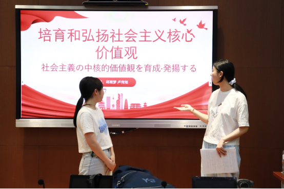 所有组别完成交替传译之后,由葛睿老师和韩思远老师进行点评和总结,对各组的表现进行了详细的解析,肯定各组的优点,并纠正一些在发言中的错误,中日用语的差异。并在此基础上提出一些建议,注意一些在口译过程中的细节,如:口译时的姿态,音调,音量,发音。希望可以剔除瑕疵,进一步提升同学们外交外事翻译实践实务能力。