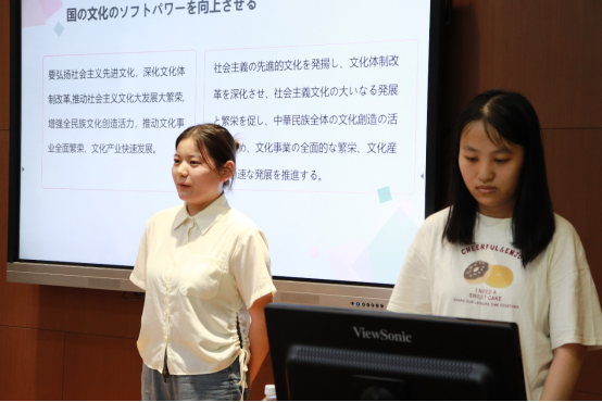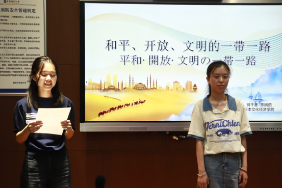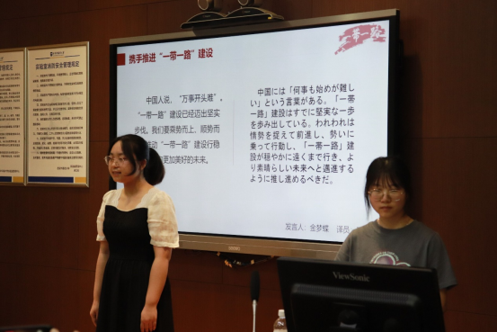 首先由韩思远老师介绍本次实践大练兵的背景和意义,以及开展方式。接下来分组进行实践活动,每组都由发言人和译员组成。为了锻炼学生“讲好中国故事,传播好中国声音”的实践能力,此次活动采用汉译日的方式,由发言人使用汉语发言,译员使用日语进行交替传译。同学们使用的素材丰富多样,包括“一带一路”“提高文化软实力”“构建命运共用体”等主题,紧跟时事,关注国际,与外交外事密切相关。