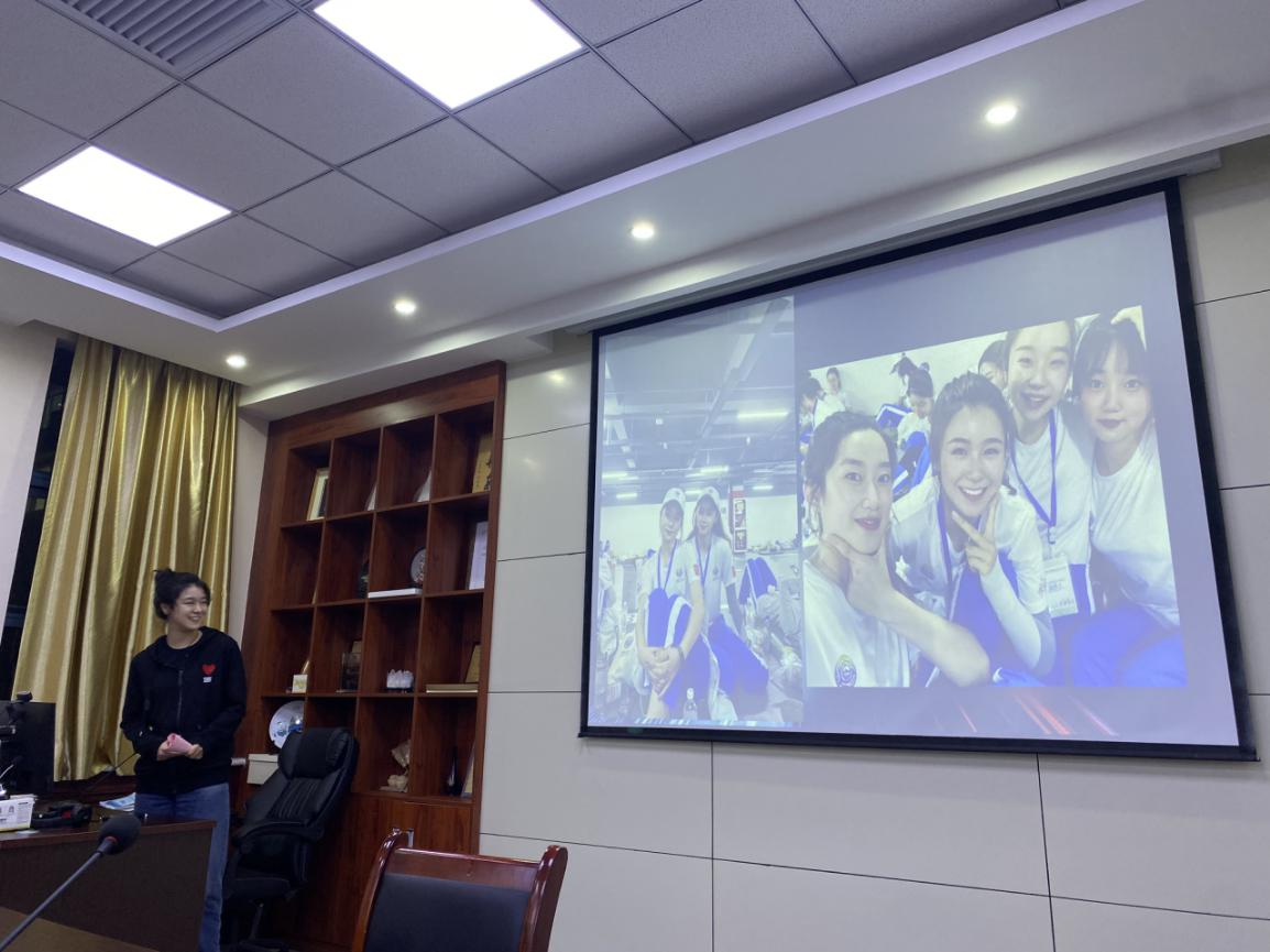 随后,带队老师王明昕以“坚持”“奉献”“成长”“感恩”四个关键词向新生们分享了自己的带队经历。演职人员代表陈柯含用视频和图片向新生展示了训练过程的点点滴滴。他们鼓励新生在学好专业知识的同时,积极参加各类实践活动,在实践过程中提升综合素养,培养社会责任感。在随后的交流环节,新生们踊跃发言,积极提问,现场气氛热烈。
