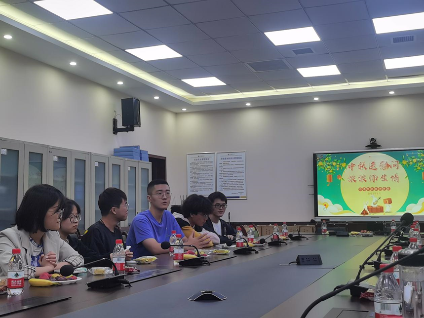座谈会上,在校学生代表讲述了自己留校学习、生活的感受与体会,感谢学校对他们的关心关爱,特别是在中秋即将到来之际,不仅缓解了离校学子的思家之情,也让同学们感受到浓浓的关怀和亲情,感受到家一样的温暖。学生们纷纷表示一定会珍惜在校时光,做好个人学习规划,用自己的实际行动回报老师之恩。张忠锋老师、陈曦老师、韩思远老师作为教师代表为同学们送去中秋的祝福和关心,老师们还就同学们关注的学业问题给予精心指导,对同学们提出的生活困扰进行疏导。院长毋育新对同学们一直留校学习的精神表示肯定,为同学们的考研学习进行方法指导,祝福同学们学业顺利、考研成功。最后,学生们为与会教师代表献上教师节鲜花,表达对老师们谆谆教诲的感恩之情。