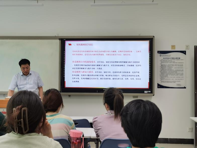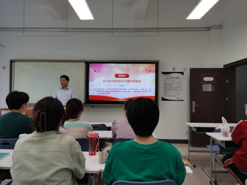 高万辉传达学习了中共中央关于开展党纪学习教育的决策通知和校党委开展党纪学习教育的工作方案,并领学了《中国共产党纪律处分条例》(以下简称《条例》)的部分内容,解读了《条例》的主要修订内容及其鲜明特征,进一步阐释了《条例》对于推动全面从严治党向纵深发展的重要意义。