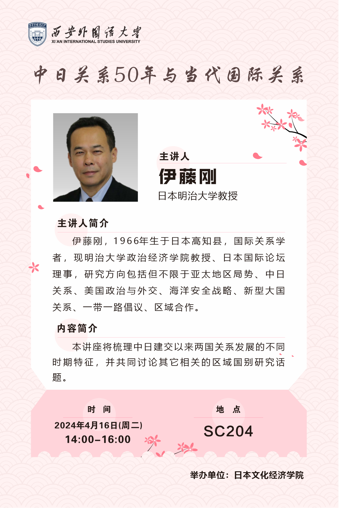 讲座名称:《中日关系50年与当代国际关系》